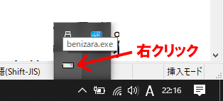 (4)再起動すると、タスクトレイにbenizaraのアイコンが現れます。